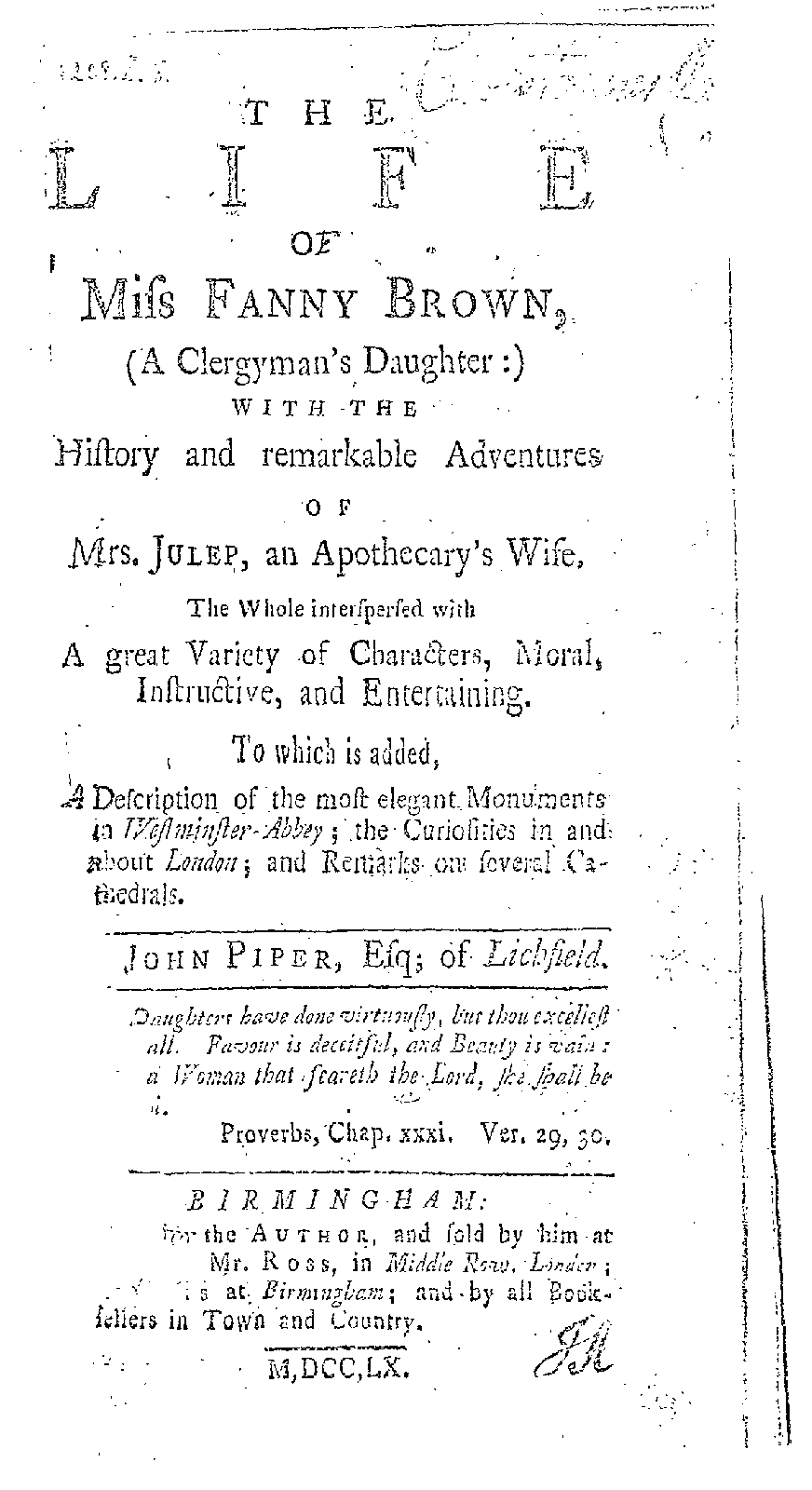 A semi-autobiographical novel, with anecdotes on 18th-century cathedral music.