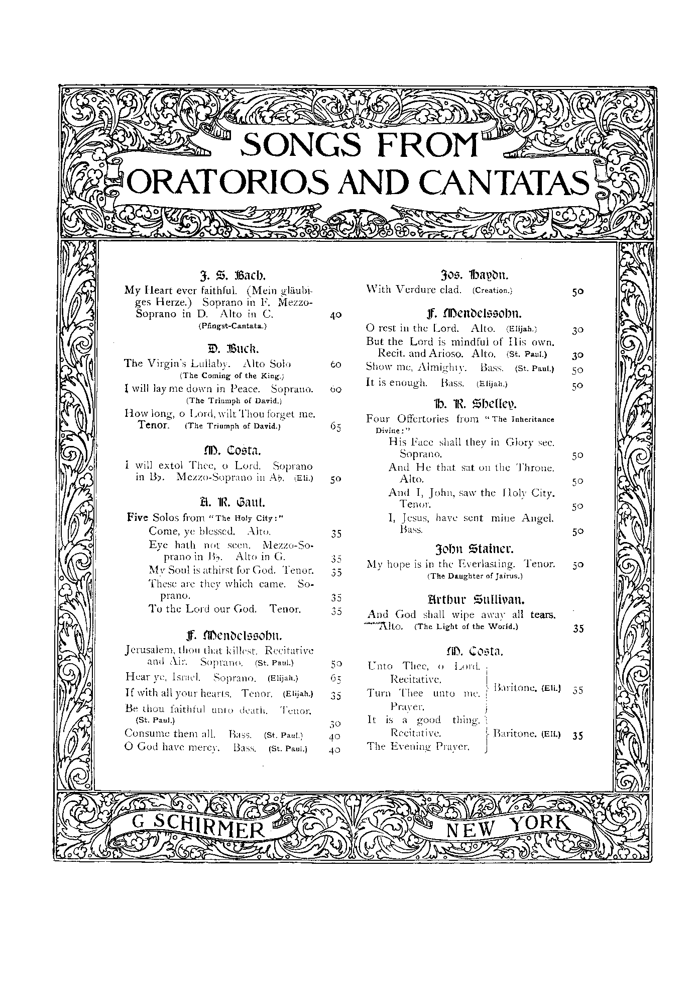 The Cramer vocal score exists in two editions, the first of which, containing 275 pages of music, reflects the work as first performed in Birmingham in 1873. The composer subsequently made several significant cuts and alterations to the oratorio and a second edition was issued, running to 259 pages. The Schirmer vocal score reflects these revisions.