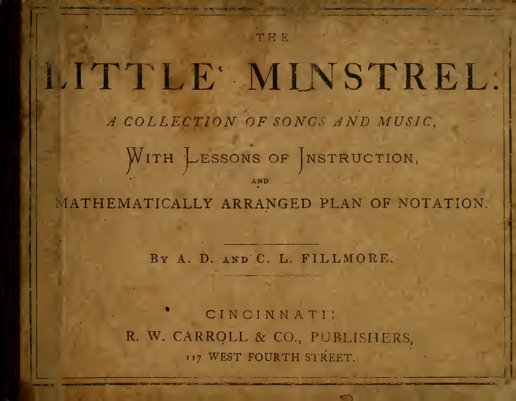 | Alternative. Title | The Little Minstrel: A collection of songs and music, with lessons of instruction, and mathematically arranged plan of notation. By A. D. Fillmore, author of the Psalmist, Musician, Nightingale, Choralist, Polyphonic, Psaltery, Harp of Zion, Violet, etc. |