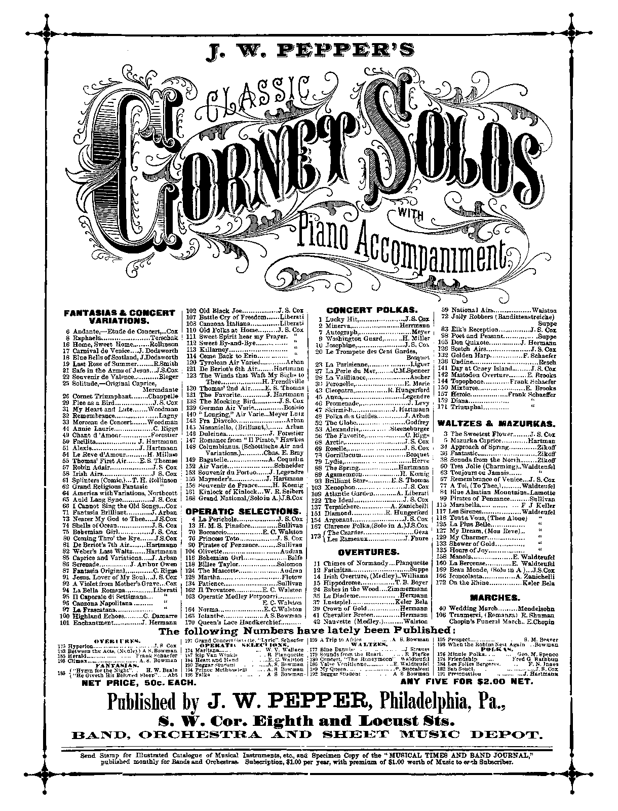 This work might have been published for orchestra in 1884 as part of J.W. Pepper's Theatrical and Dance Journal series. It would have been assigned a number beyond 201 for which we currently don't have records.