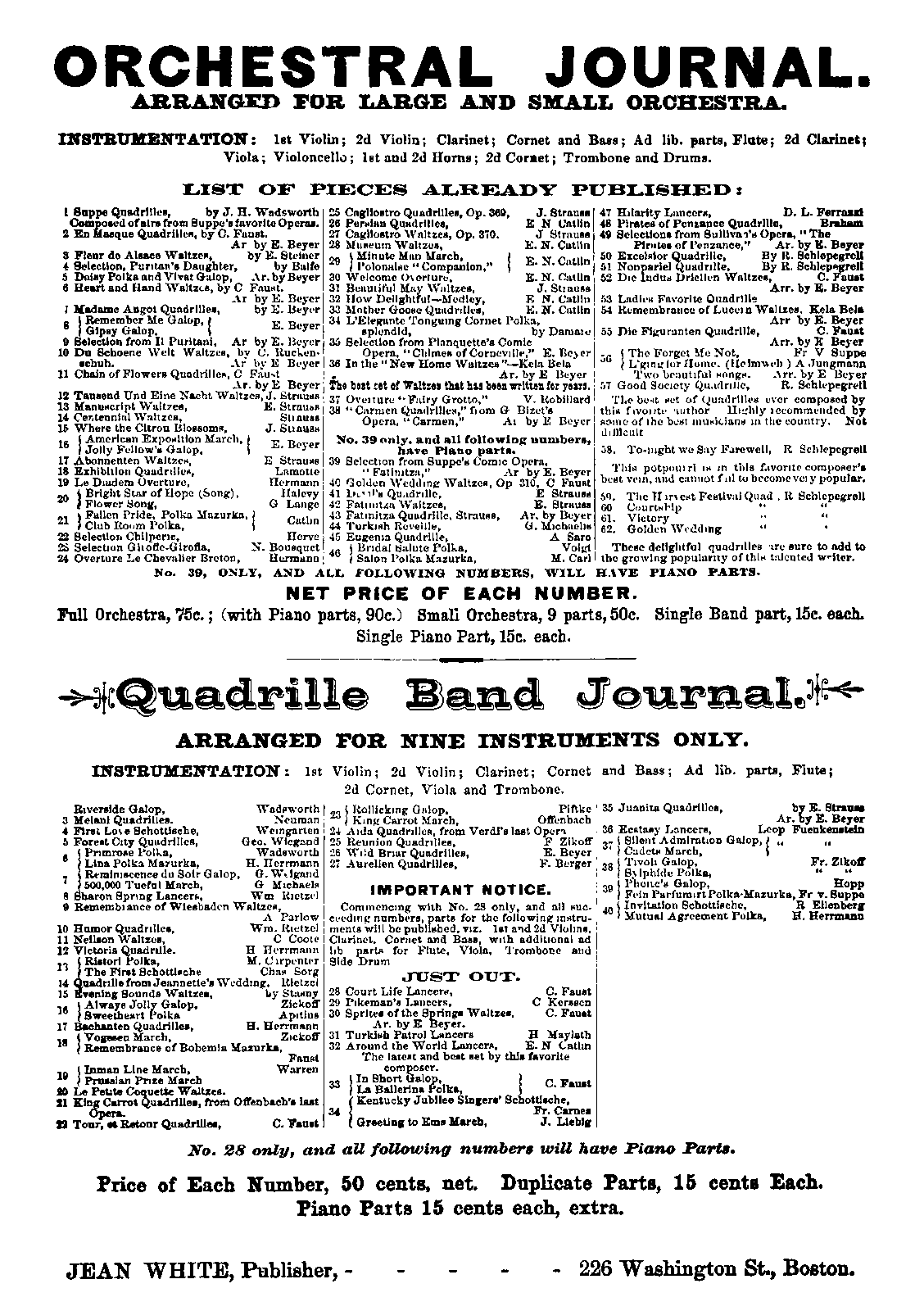 As published the work could be performed by violins 1 & 2, clarinet 1, cornet 1, and bass. The remaining parts are ad lib.