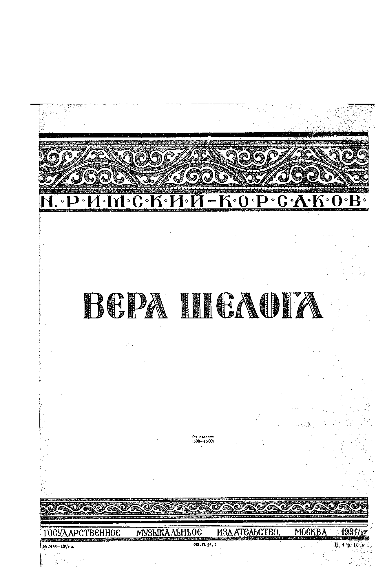 Publisher. Info. Moscow: Muzgiz, 1931. Plate М. 9168 Г.