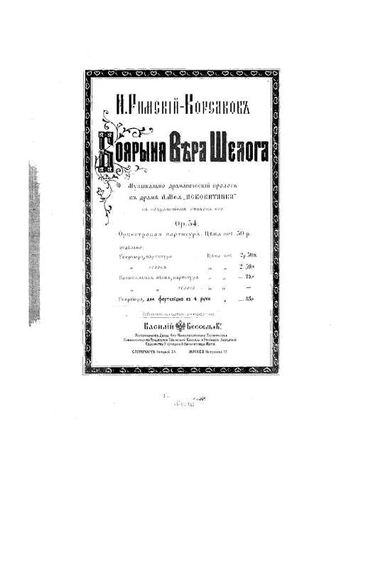 The Noblewoman Vera Sheloga, Op.54 (Rimsky-Korsakov, Nikolay)