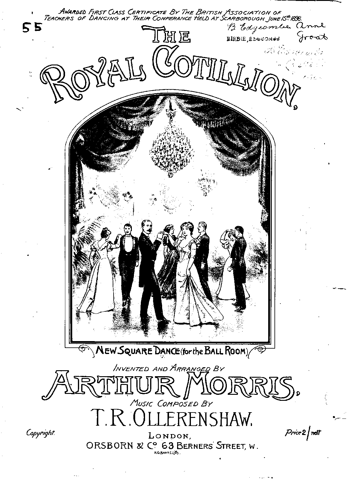Awarded First Class Certificate by the British Association of Teachers of Dancing at their conference held by Scarborough June 15th 1898