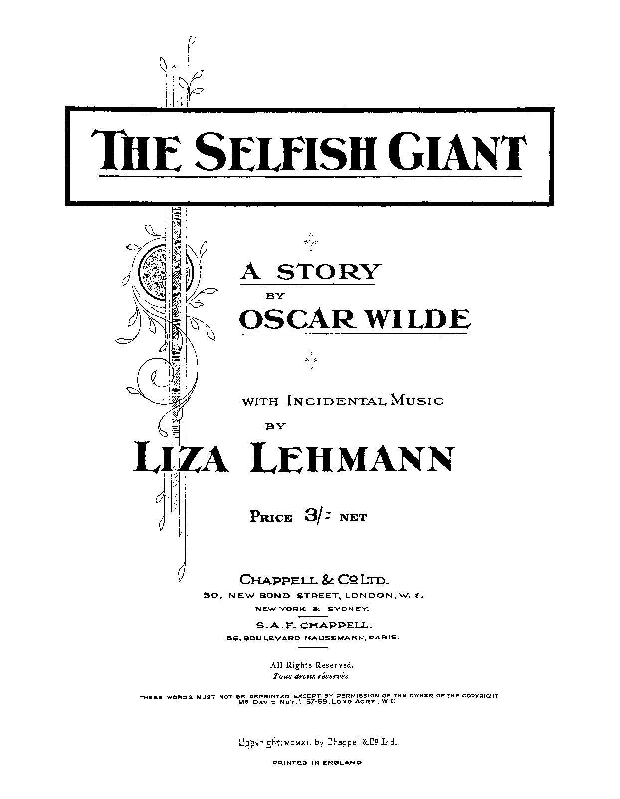 A Story by Oscar Wilde ; Incidental music by Liza Lehmann