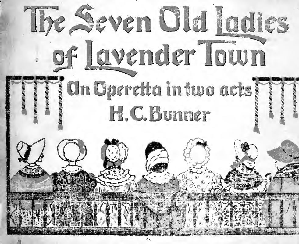 Second of a group of three operettas (possibly meant as a group and published so after Bunner's death) that Bunner and Weil collaborated on: "Three Little Kittens," "Seven Old Ladies of Lavender Town," and "Bobby Shaftoe". (IArch has, I now notice, all three operettas in vocal score uploaded too... qv this link also pub. 1897.)