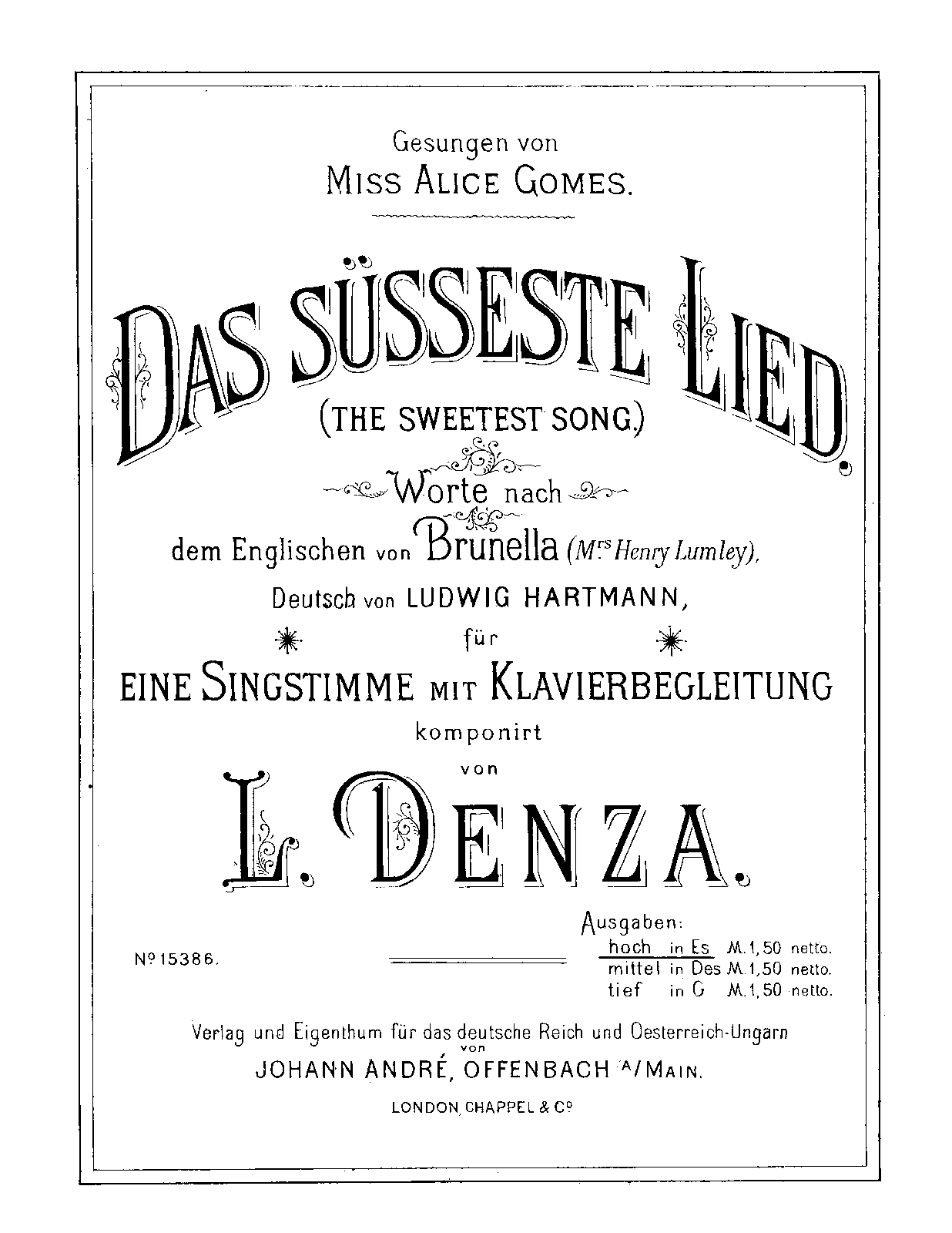 | Librettist | Brunella (pseud. for Mrs. Henry Lumley) |