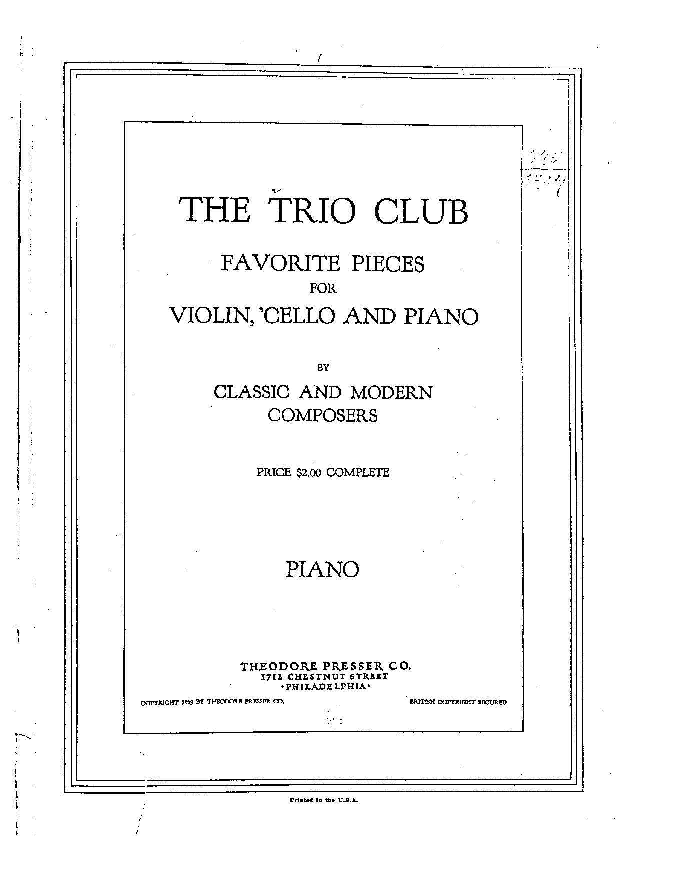 | Genre Categories | Pieces; For violin, cello, piano; Scores featuring the violin; |