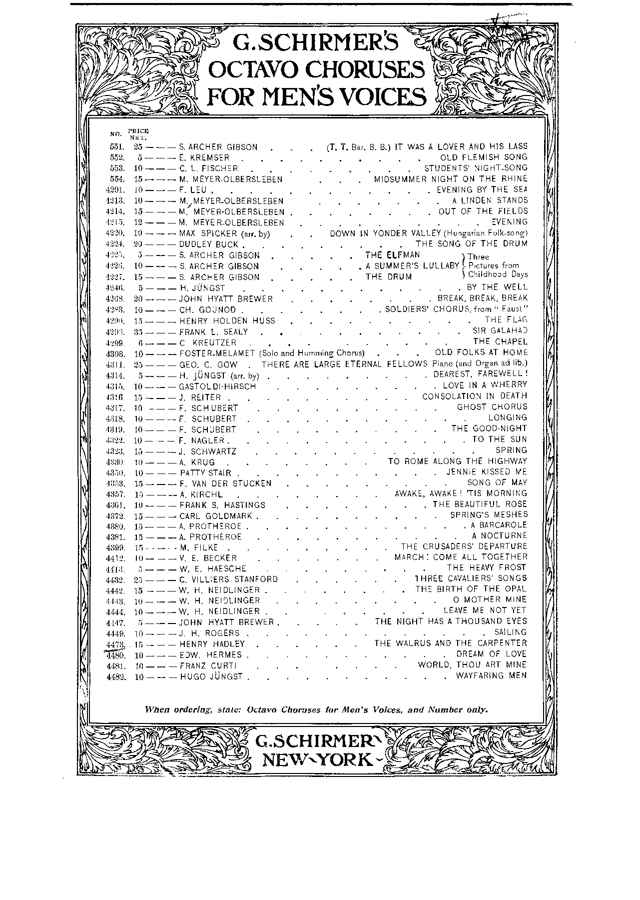 | Genre Categories | Songs; Secular choruses; Choruses; |