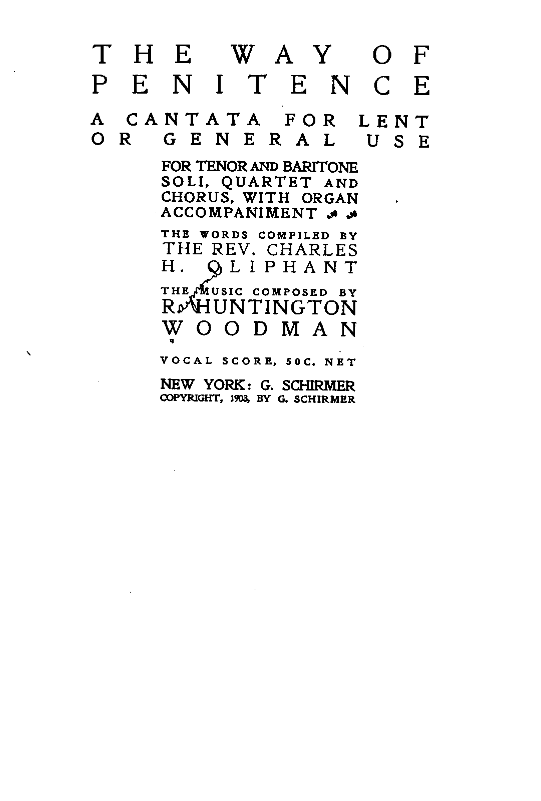 A Cantata for Lent or General Use for Tenor and Baritone Soli, Quartet and Chorus, with Organ Accompaniment