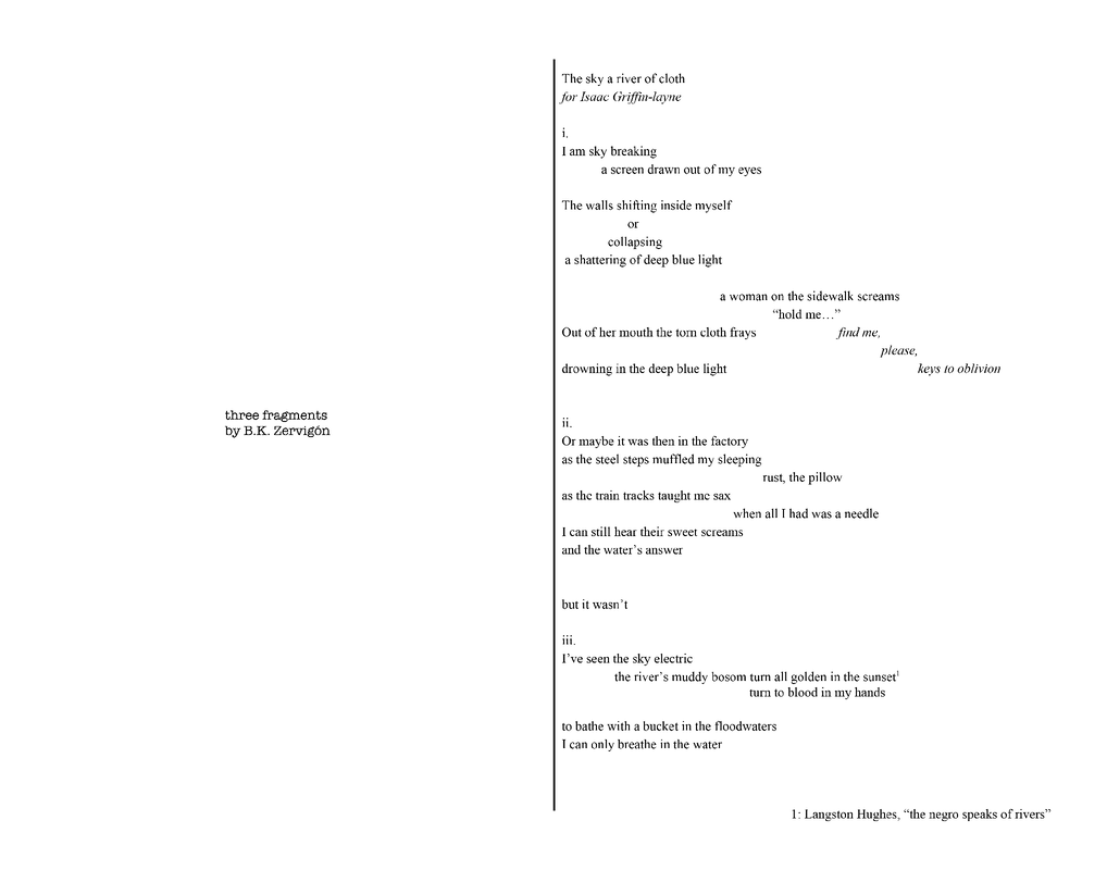 | Work Title | the sky a river of cloth |