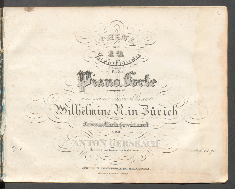 | Dedication | seiner lieben Braut Wilhelmine K. in Zürich freundlich gewidmet |