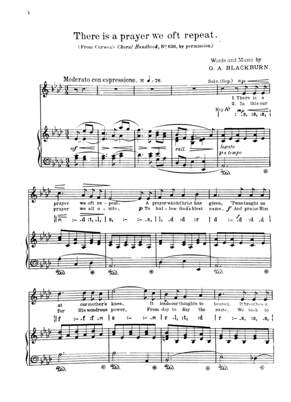 Soprano solo followed by SATB unaccompanied setting of the Lord's Prayer, which could be used separately.