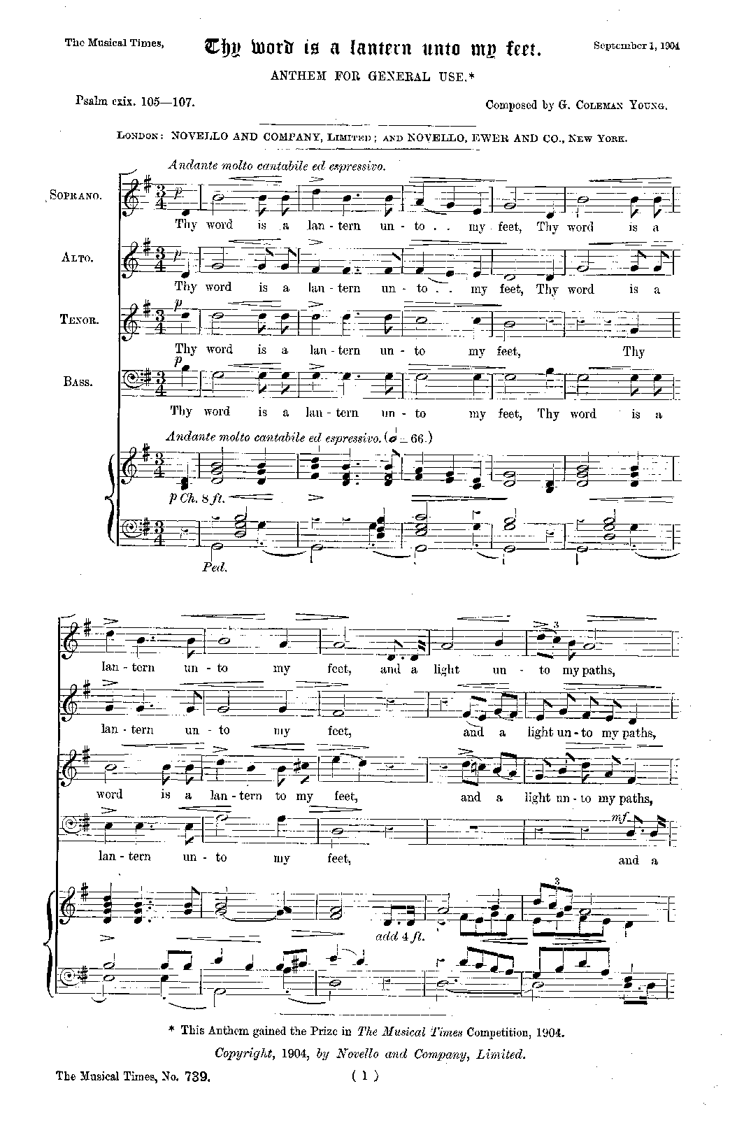 This Anthem gained the Prize in The Musical Times Competition 1904