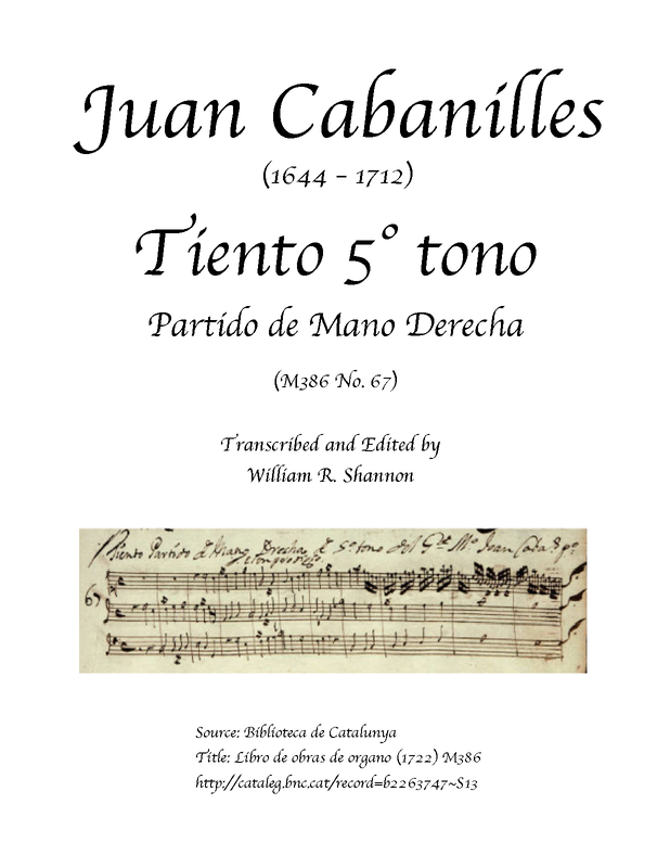 | Work Title | Tiento Partido de Mano Derecha de 5° tono (M386 No.67) |