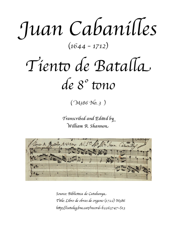 | Work Title | Tiento de Batalla de 8° tono (M386 No.3) |