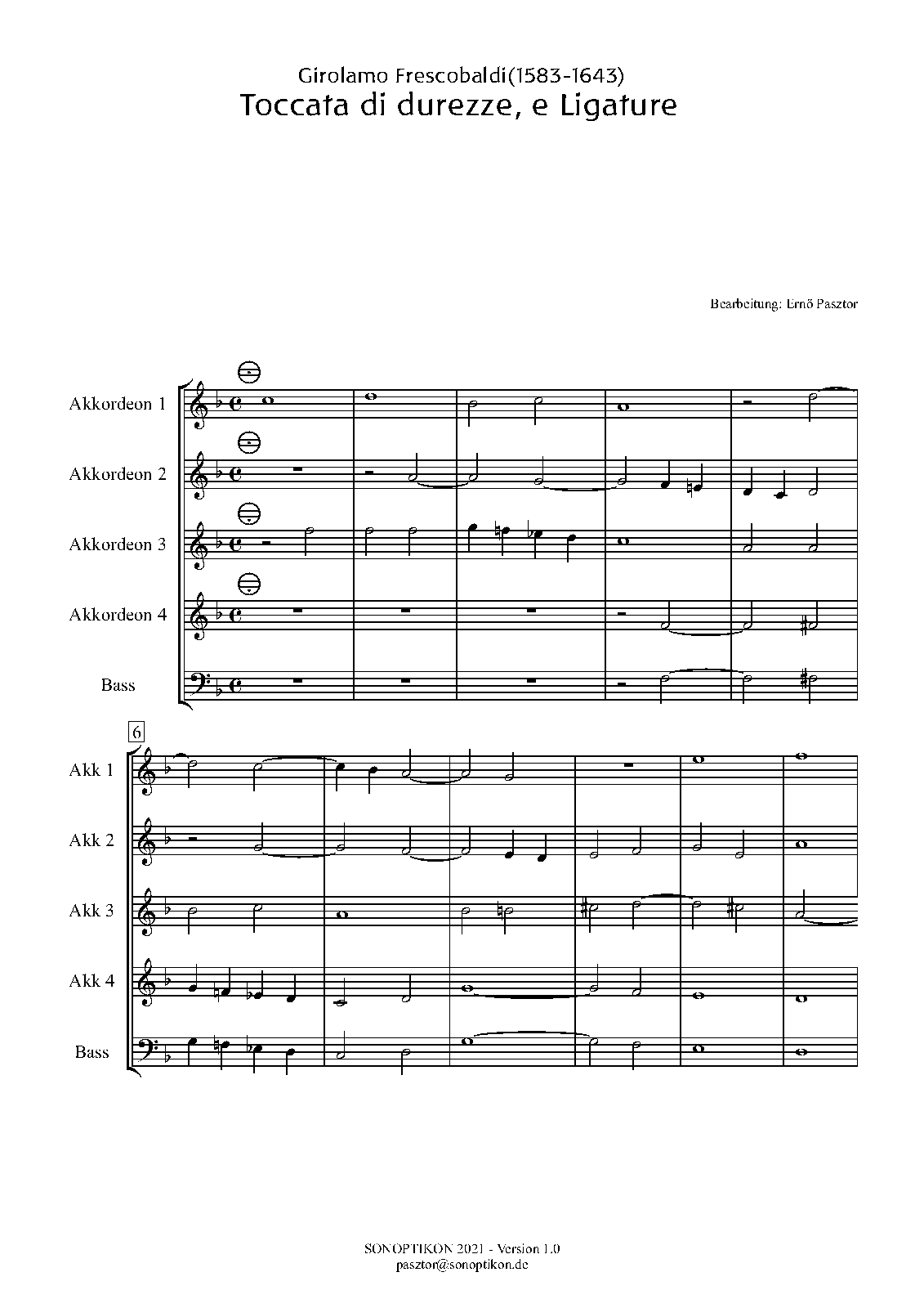 | Work Title | Toccata di durezze e ligature per organo |