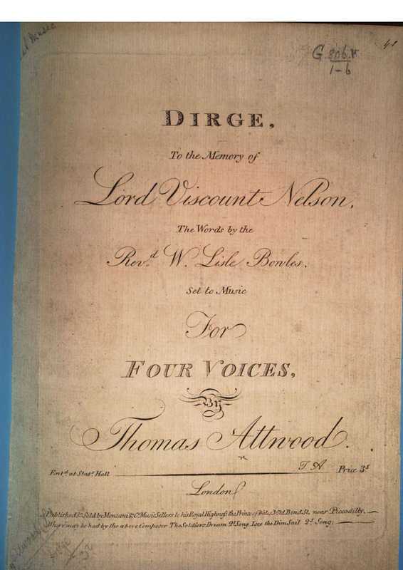 | Alternative. Title | Dirge, to the Memory of Lord Viscount Nelson ... set to Music for Four Voices, by Thomas Attwood |