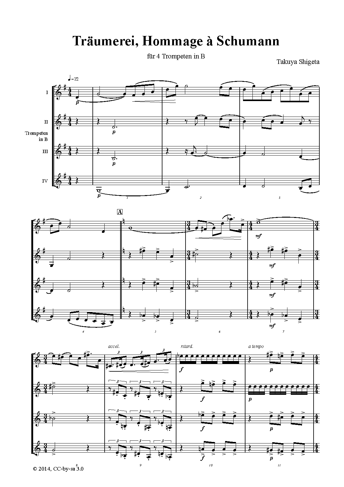 | Work Title | Träumerei, Hommage à Schumann für 4 Trompeten in B |