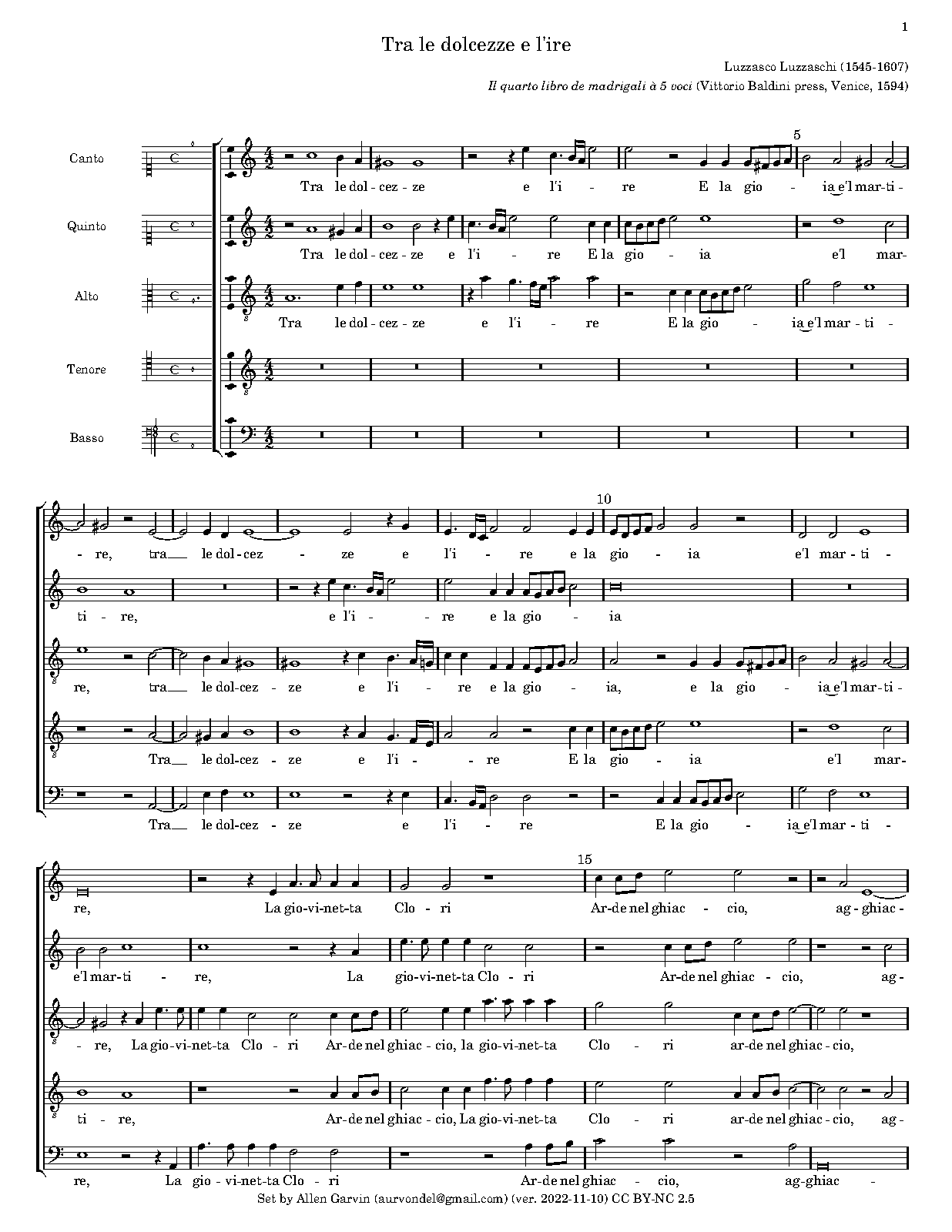 | First Publication | 1594 in Il quarto libro de madrigali à 5 voci (Ferrara: Vittorio Baldini press) |
