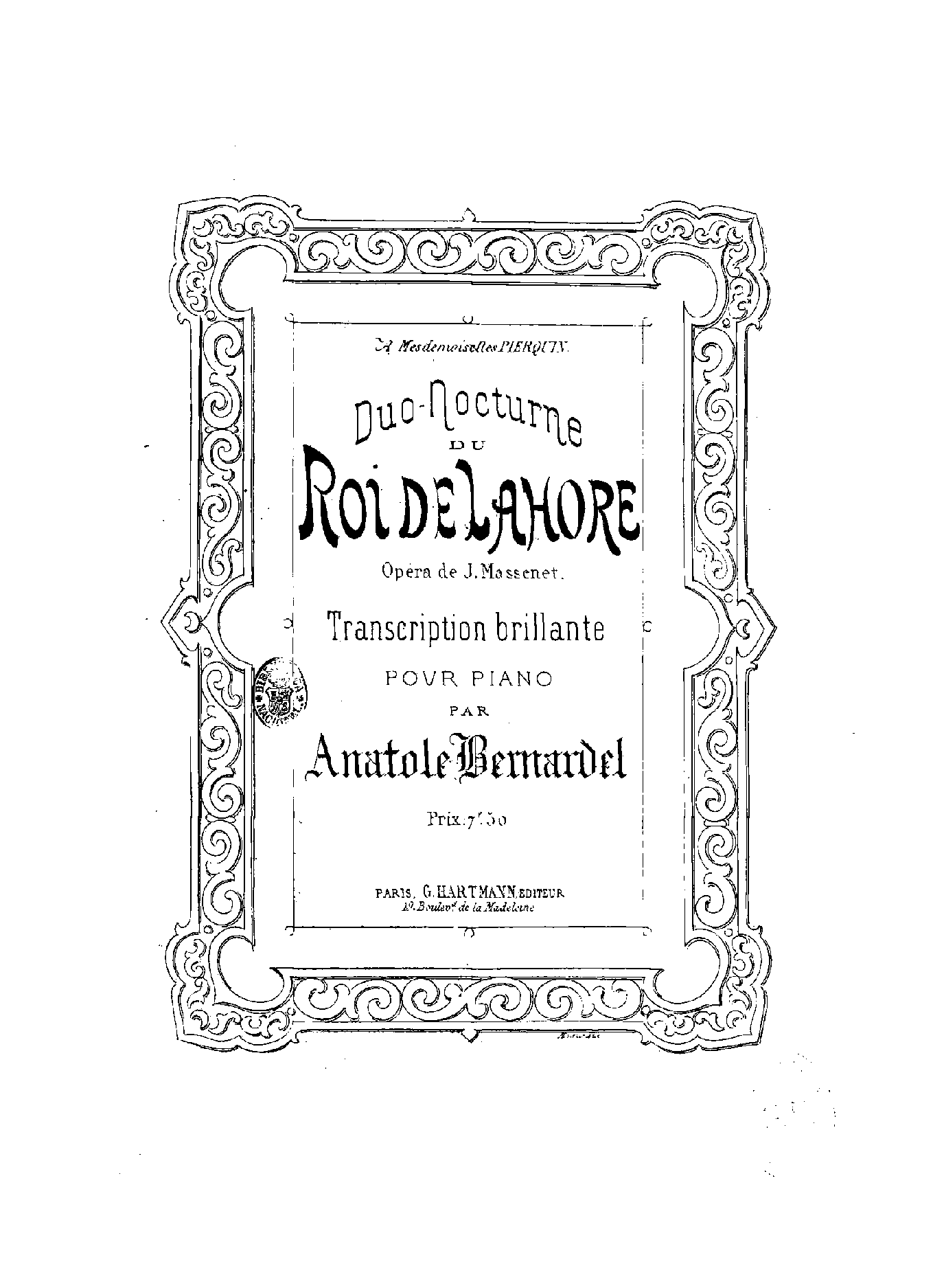 | Work Title | Transcription brillante sur Duo-Nocturne de 'Le roi de Lahore' |