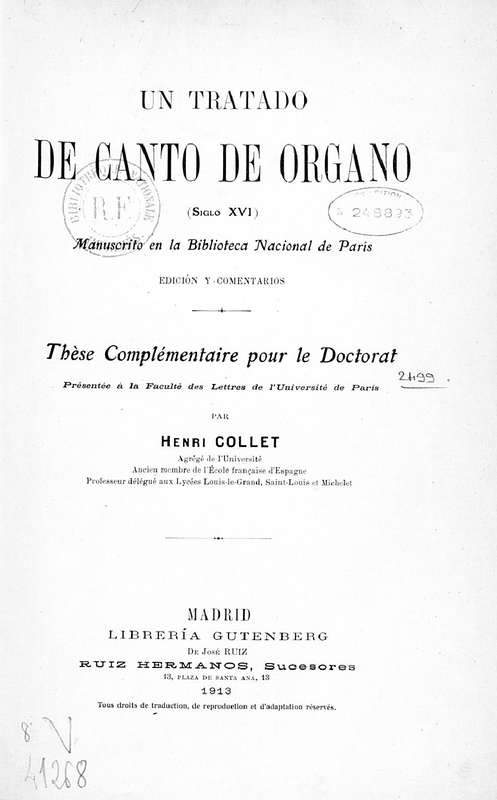 Alternative. Title Arte de canto d'organo / Traité de chant