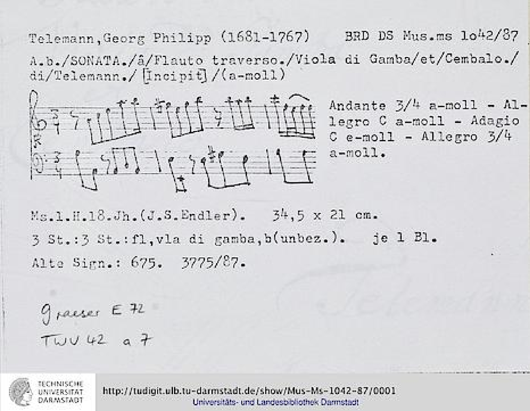 Misc. Notes Universitäts- und Landesbibliothek, Darmstadt (D-DS): Mus.ms 1042/87