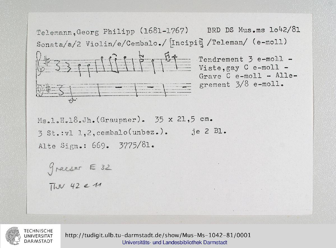 | Opus/Catalogue NumberOp./Cat. No. | TWV 42:e11 |