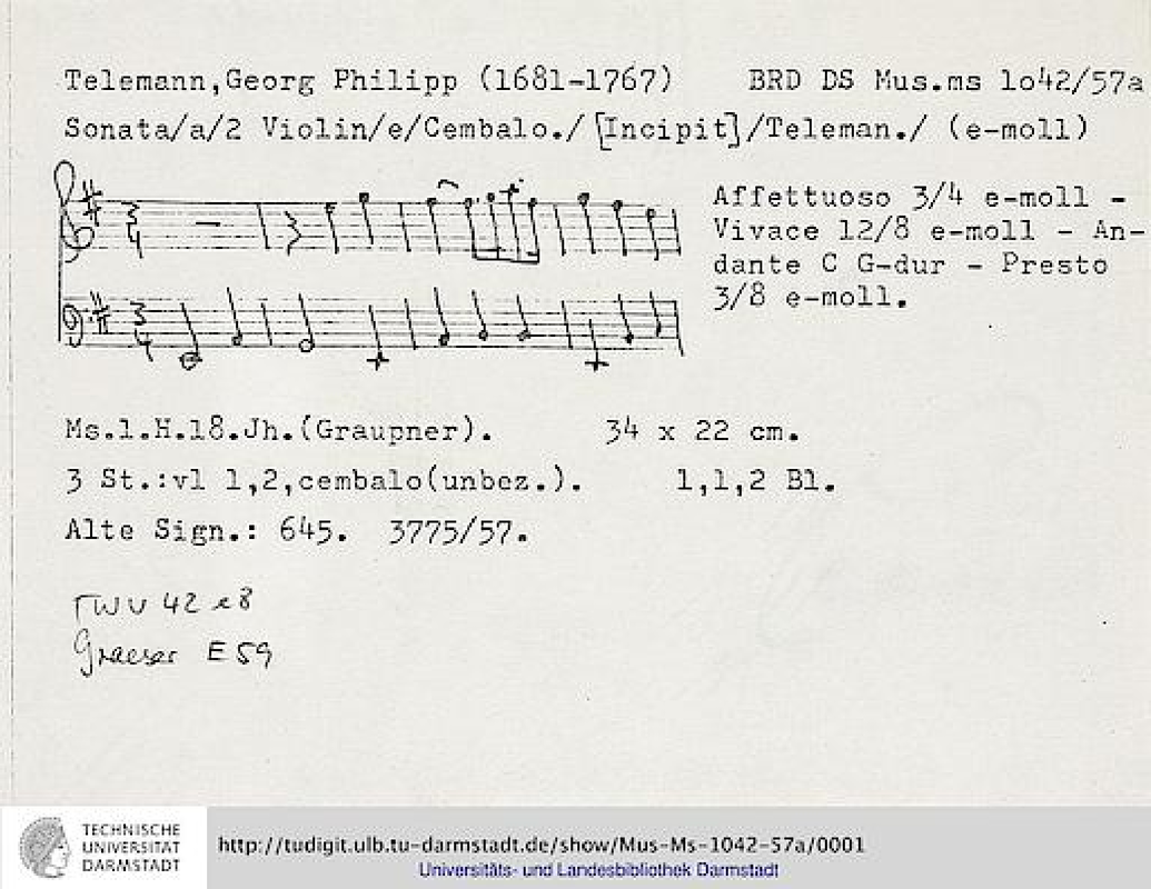 | Opus/Catalogue NumberOp./Cat. No. | TWV 42:e8 |
