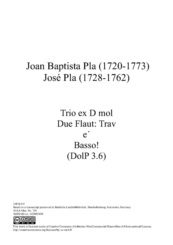 | Alternative. Title | Trio ex D mol, Due Flaut: Trav: e Basso |