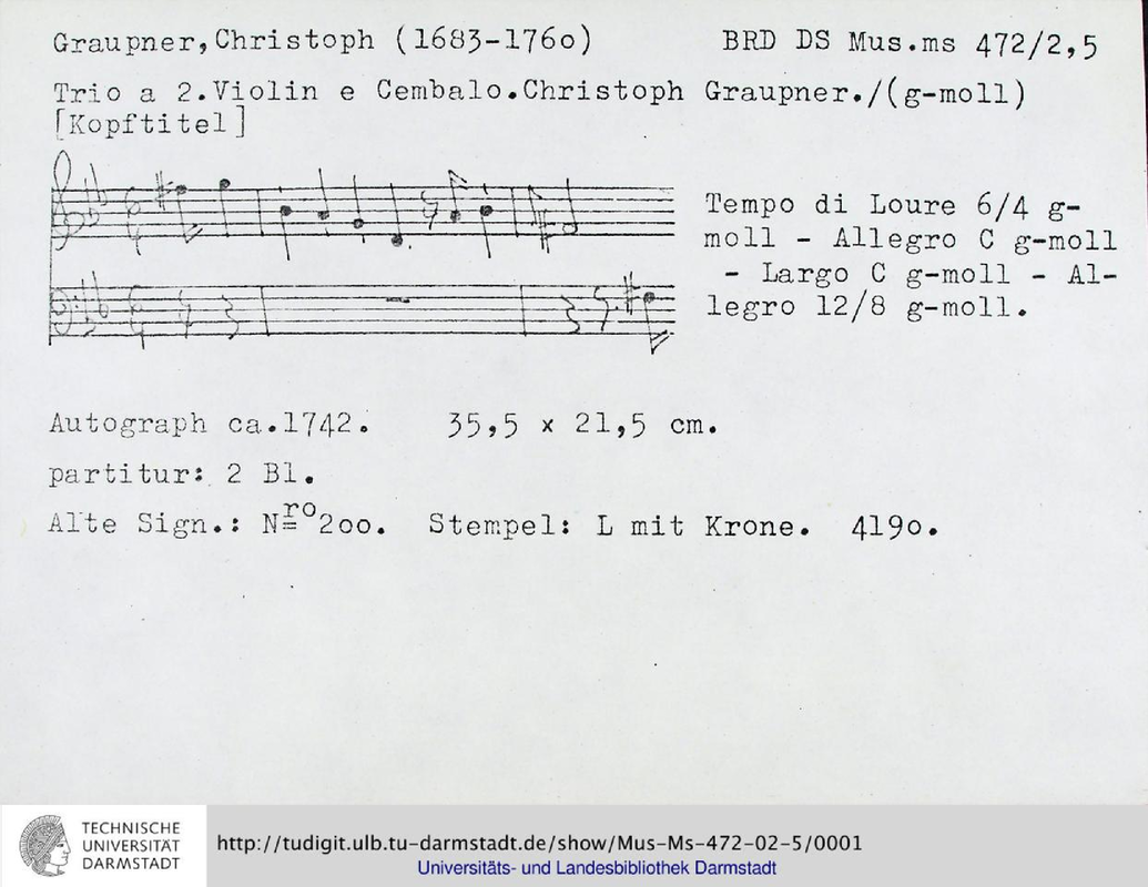 | Year/Date of CompositionY/D of Comp. | ca. 1742 |