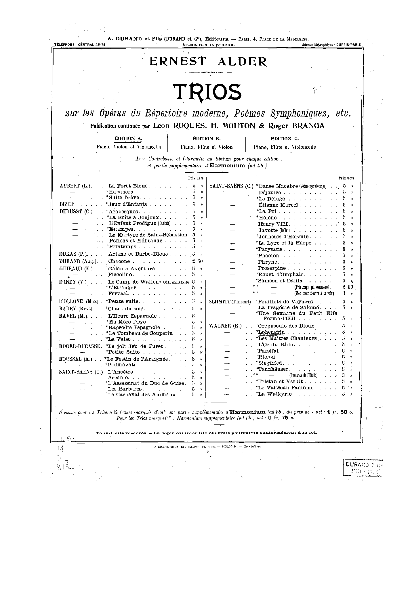 | Genre Categories | Trios; Paraphrases; For violin, cello, piano; |