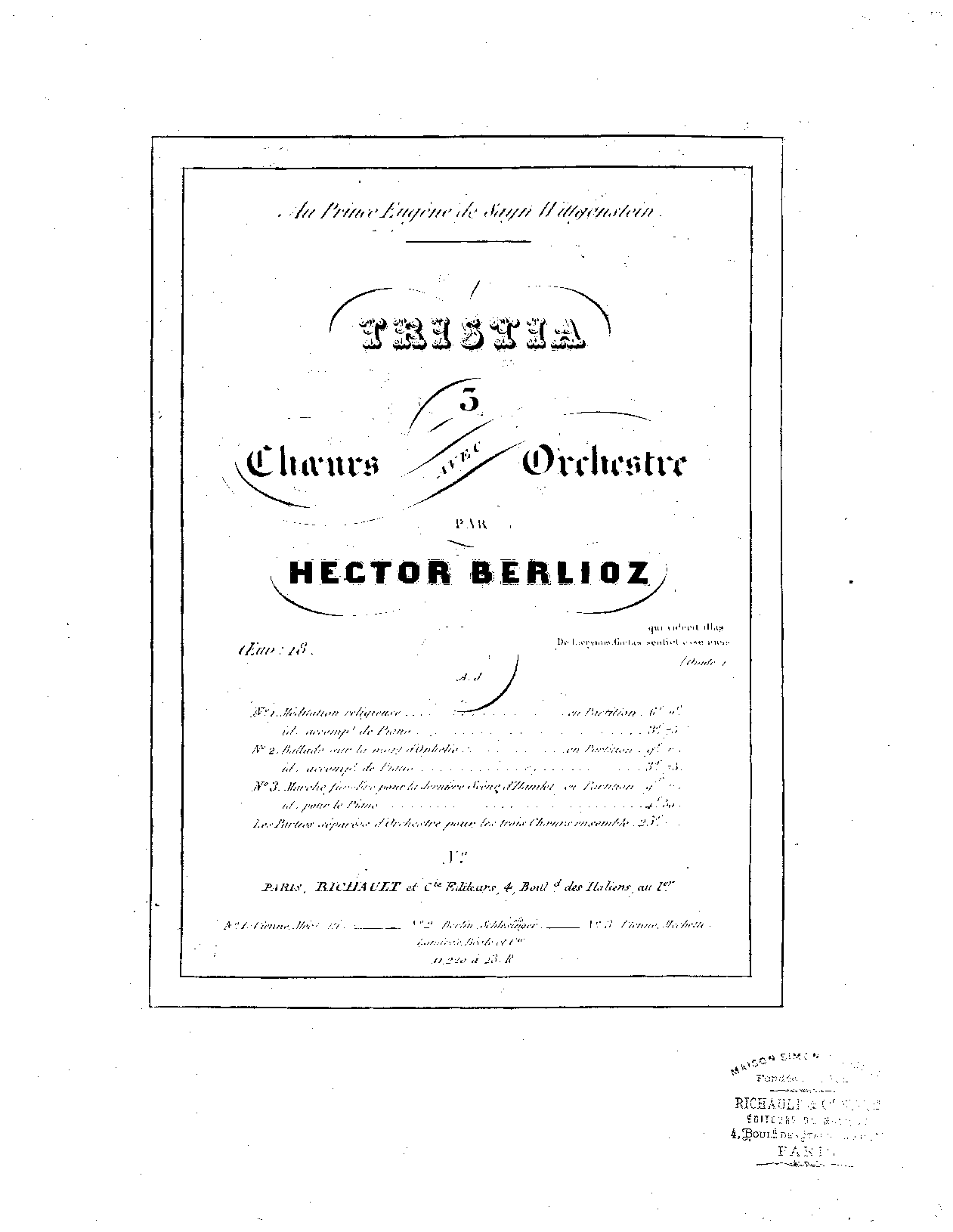 | First Publication. | 1849 (H 119A), 1852 - Paris: Richault (H 119B, full score, parts) |