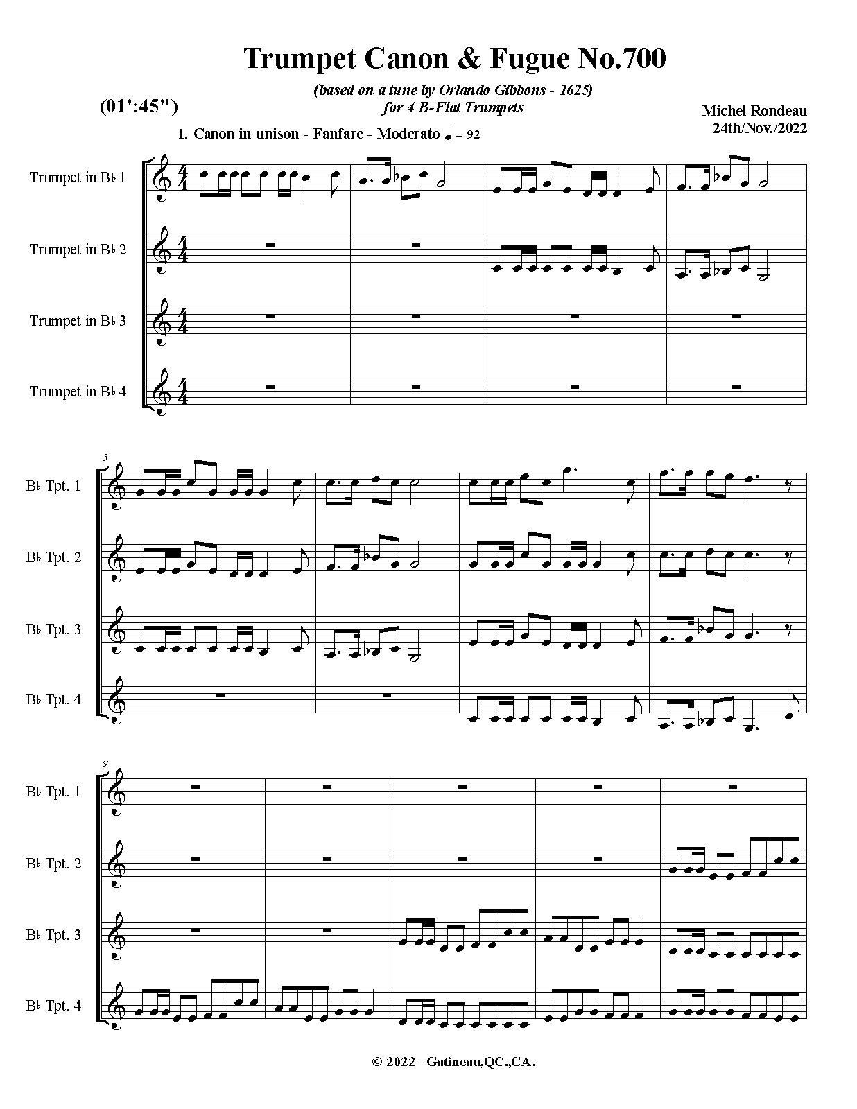 | Work Title | Trumpet Canon & Fugue No.700 |