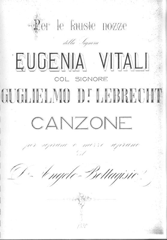 | Dedication | Per le Fauste Nozze della Signora Eugenia Vitali col Signor Guglielmo D.r Lebrecht |