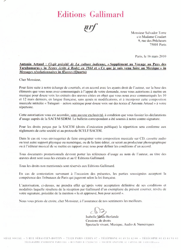 Le plus tentant d’Artaud est de prendre de lui le côté délirant, le côté « aliéné » comme le considérait les médecins qui le « soignaient » en lui ordonnent près de 60 électrochocs. Ici, j’ai pris le coté lumineux d’Artaud, puisque c’est là que finalement Artaud veut en venir. Toute à la longue de cette vaste œuvre, dans laquelle on trouve un constant questionnement de la société occidentale « moderne », rebelle un cri de lumière sur la nécessité d’un homme nouveau. C’est cela qu'Artaud va chercher dans les rites des Tarahumaras, cet « autre moi » ce nouvel être. Loin de l’incarnation « christique» vouée à la mort dans laquelle l’humanité est enfermée, Artaud bâti une « Machine de guerre », puis il démembre son propre « Corps sans Organes » pour confier à « Ciguri des Tarahumara, le Dieu de la Prescience et du Juste, de l’équilibre et du contrôle de soi » la réinvention d’un Corps Humain indissociablement poème, dessin, théâtre, danse, un corps infiniment puissance de l’être. S.T.