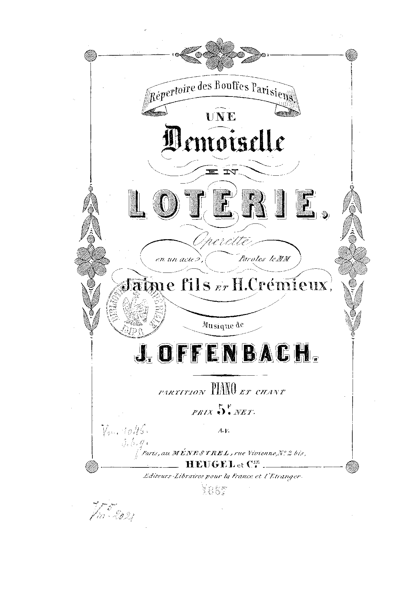 | Librettist | Adolphe Jaime (1824–1901) Hector-Jonathan Crémieux (1828–1892) |