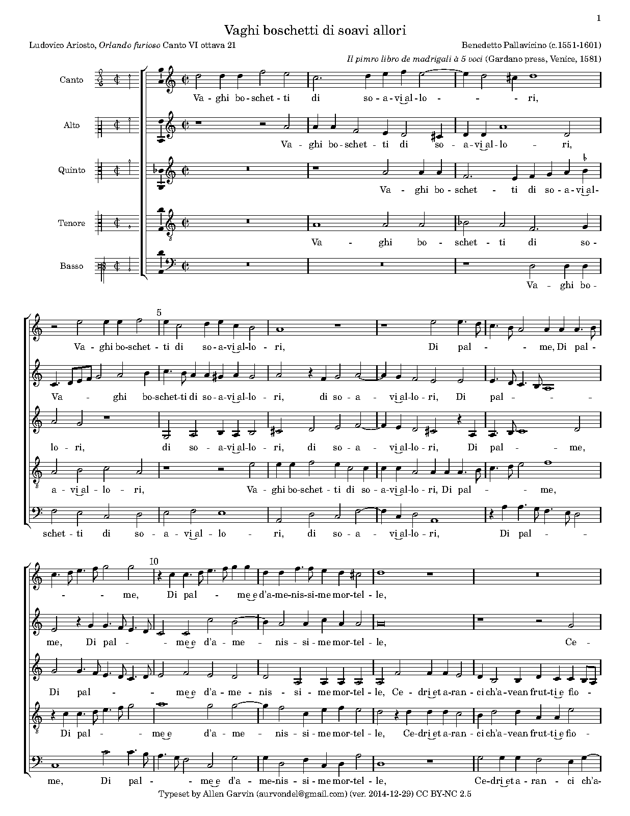 | First Publication | 1581 in Madrigali a 5 voci, Libro 1 (No.2) |