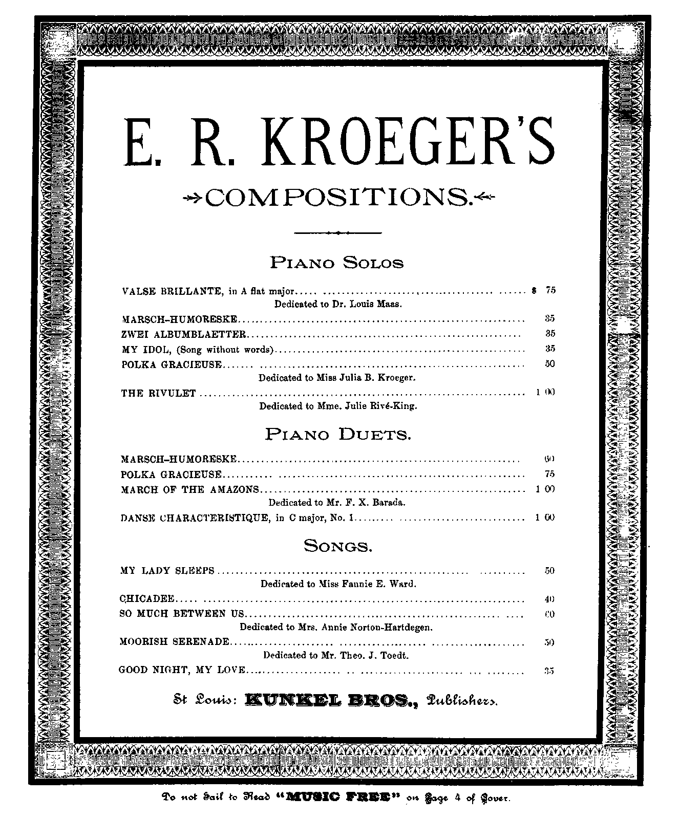 | First Publication. | 1883 – St. Louis: Kunkel Brothers |