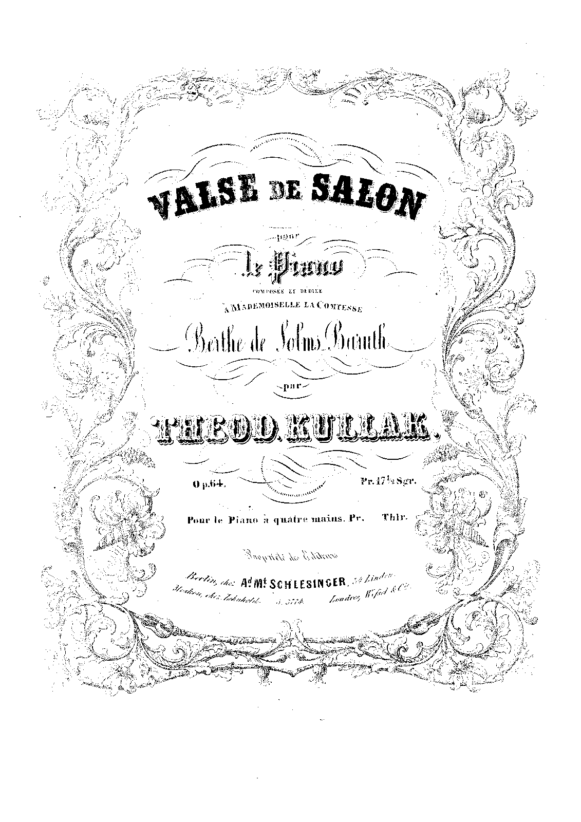 | Dedication | à Mademoiselle la Comtesse Berthe de Solms-Baruth |