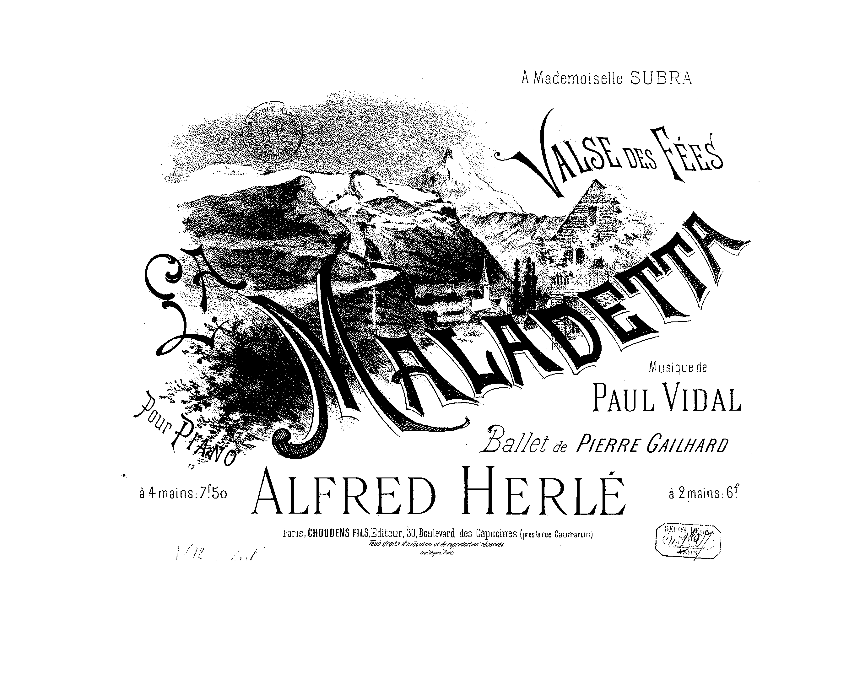 | Alternative. Title | La Maladetta. Ballet en deux actes de Pierre Gailhard. Musique de Paul Vidal. Valse. |