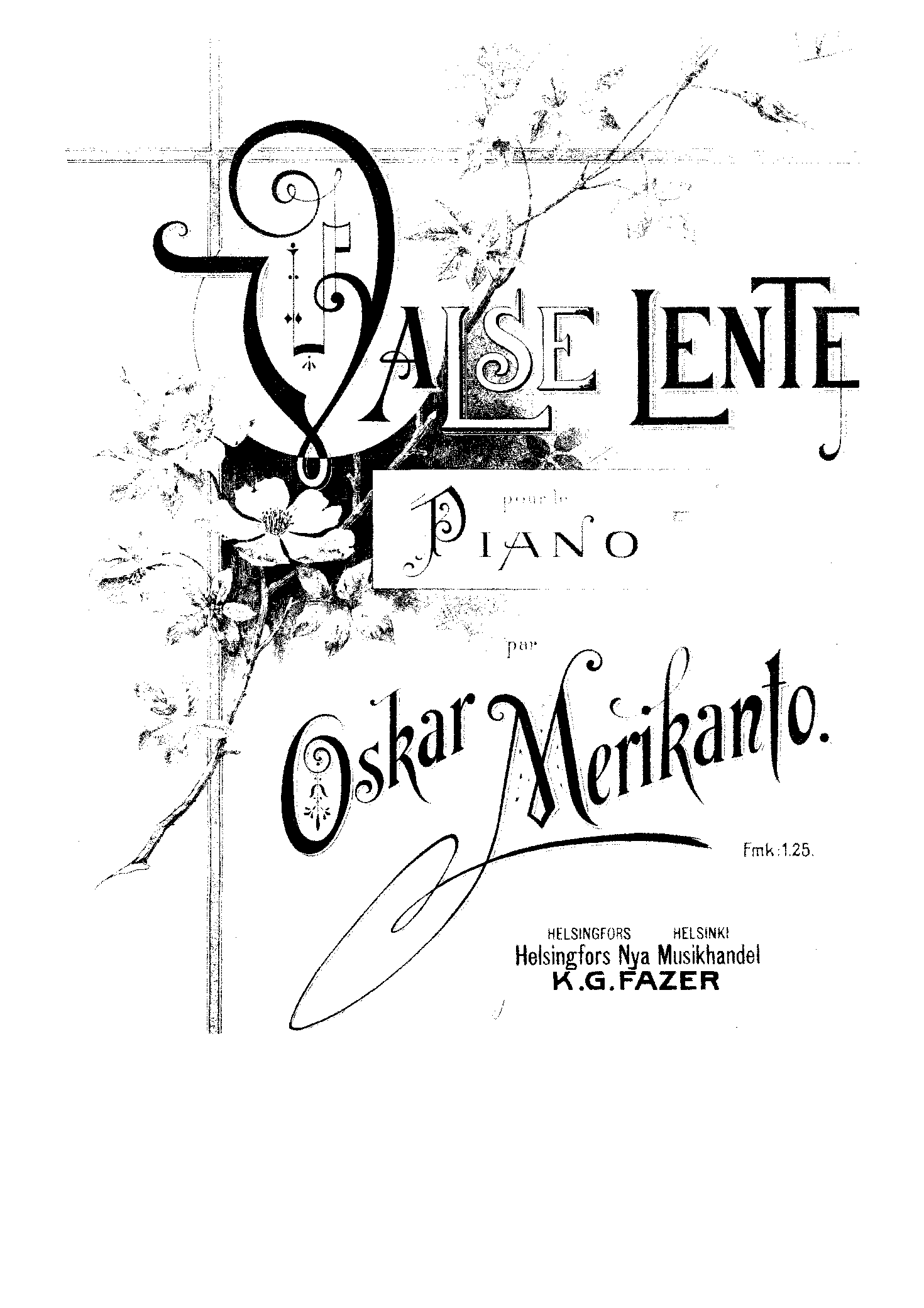 Publisher. Info. Helsinki: Helsingfors Nya Musikhandel, n.d.(ca.1898). Plate H.N.M. 167.