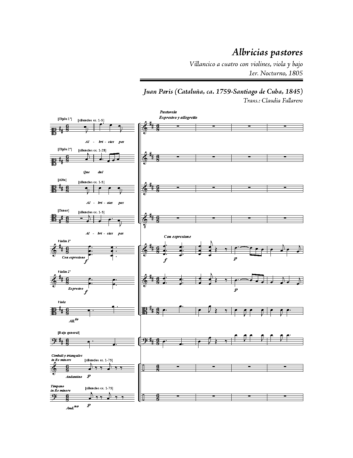 | Extra Information | Villancico a cuatro con violines, viola, bajo, oboes o flautas. 2do. Nocturno, 1805. Manuscrito autógrafo localizado en SMEC, Leg.04, Exp. 12/ SBEC, Juan Paris, Exp.06 |