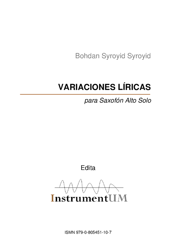 | Genre Categories | Variations; For alto saxophone; Scores featuring the alto saxophone; For 1 player |