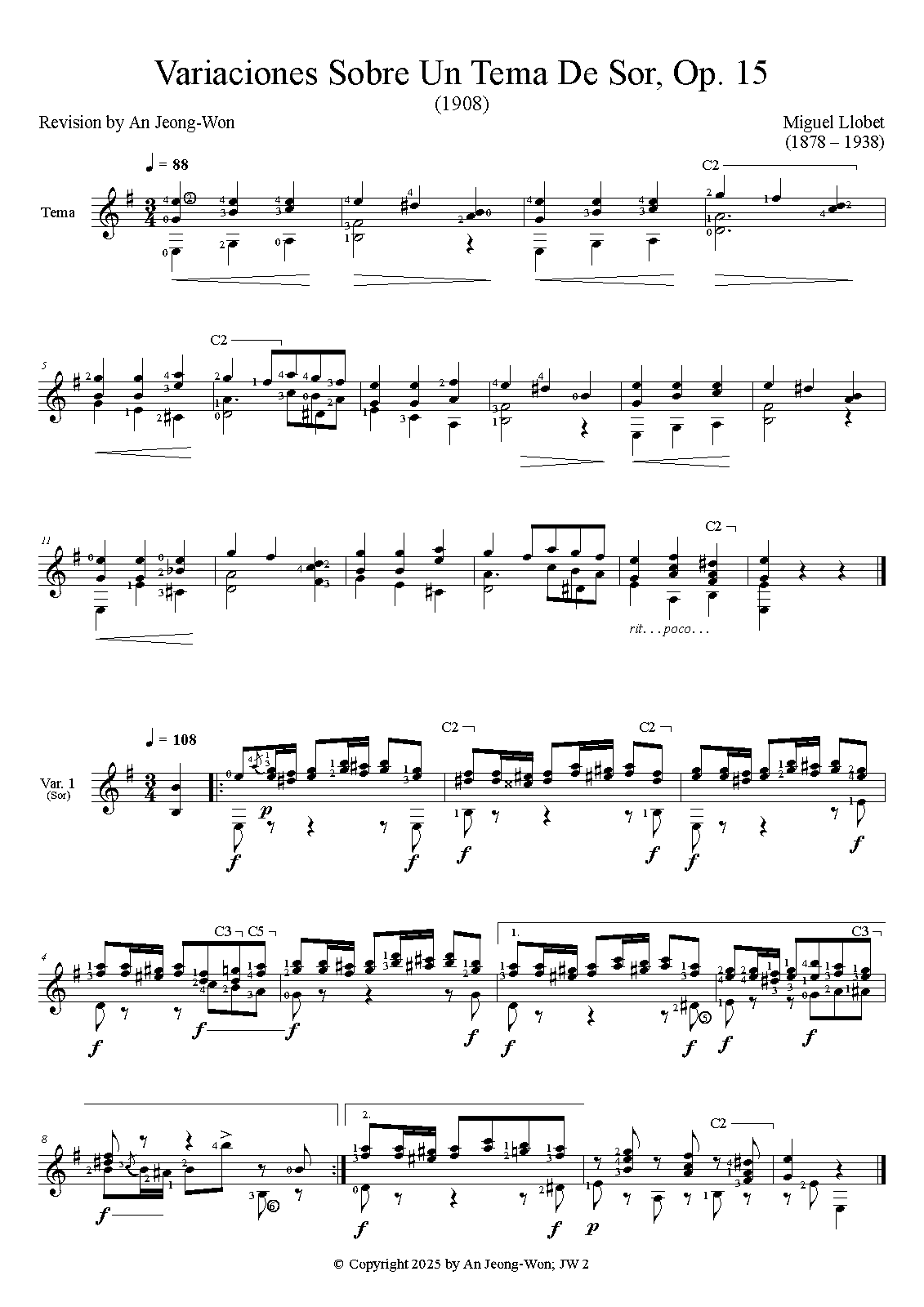 | Alternative. Title | Variations on Theme of Sor, Op. 15 |