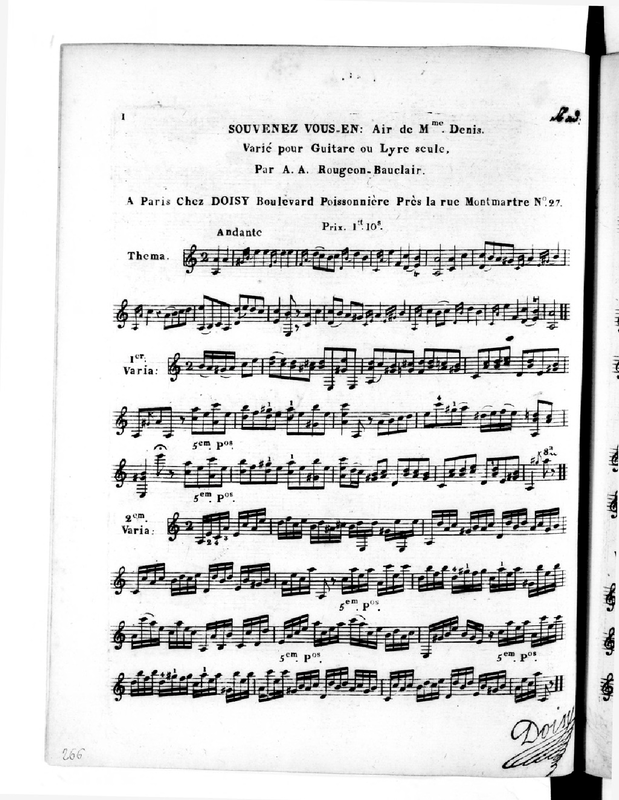| Alternative. Title | Air de Mme. Denis; Varié pour Guitare ou Lyre seule |