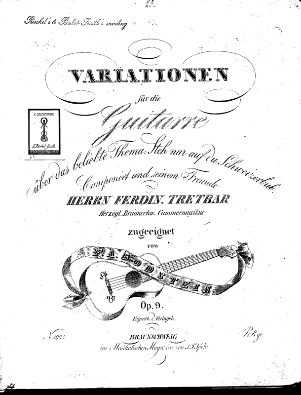 | Alternative. Title | Variationen für die Guitarre über das beliebte Thema "Steh nur auf du Schweizerbub" |