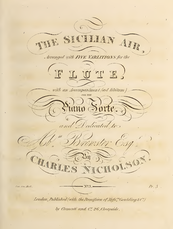 | Alternative. Title | The Sicilian Air, arranged with five variations for the flute, with an accompaniment (ad libitum) for the Piano Forte |