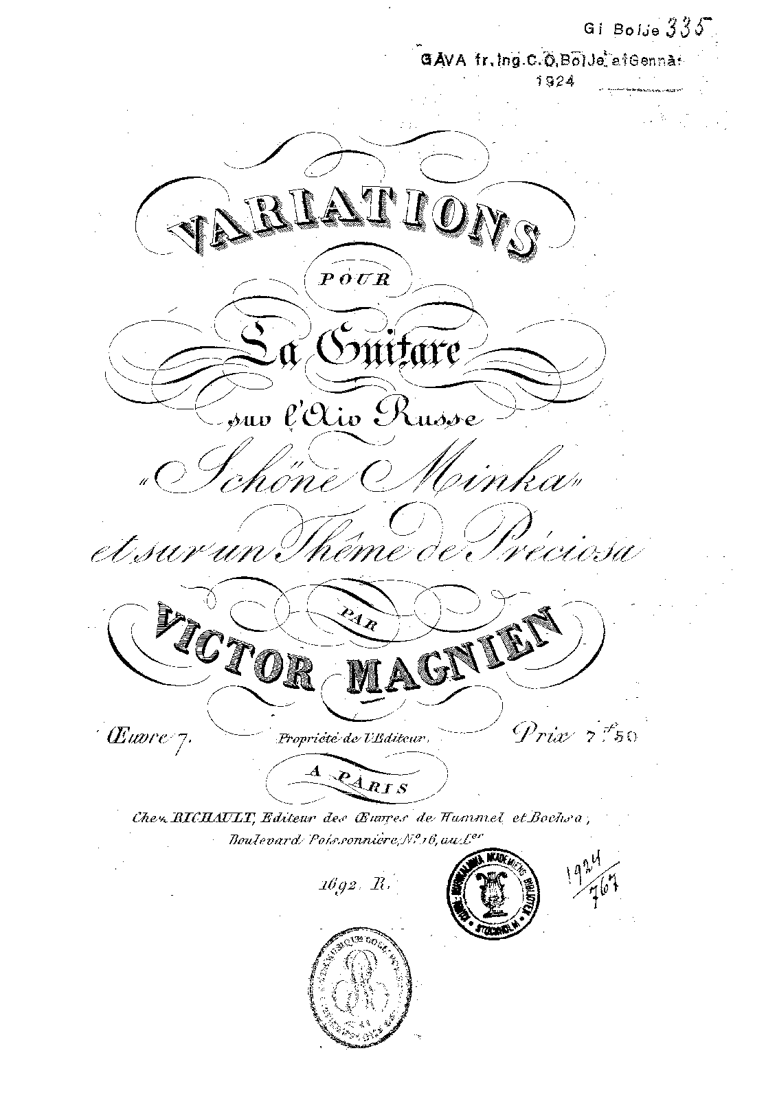 Variations pour la guitare sur l'air russe 'Schöne Minka' et sur un thème de Preciosa