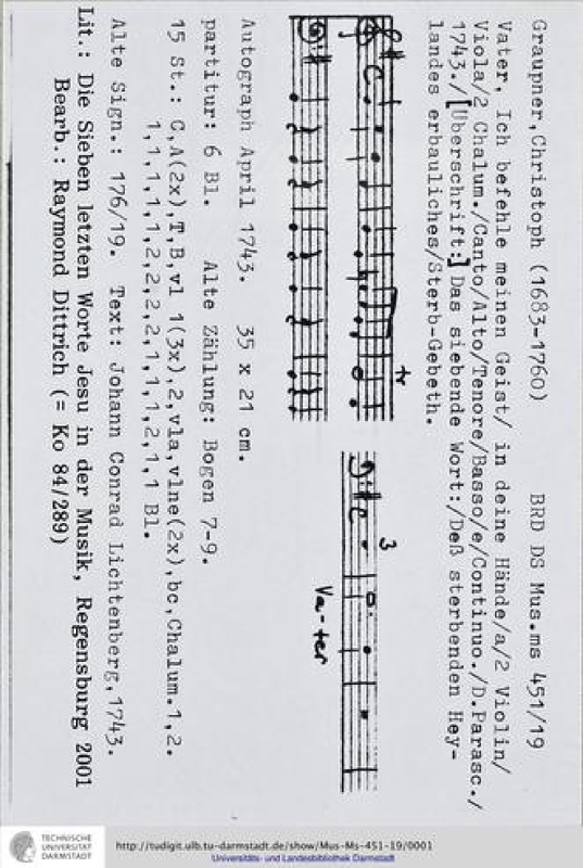 | Instrumentation | SATB, 2 chalumeaux, strings, basso continuo |